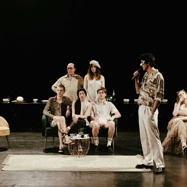 Les interprètes évoluent dans un style résolument cinématographique, à mi-chemin entre théâtre et tournage de série, où les mouvements et interactions sont pensés minutieusement. Les spectateurs voient évoluer les personnages comme dans une télé- réalité, où chaque moment de la vie des protagonistes prend forme devant eux, rendant l’expérience totalement immersive.