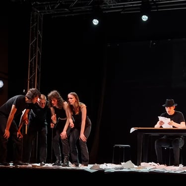 Cinq corps en tension interrogent les récits qu’on hérite, ceux qu’on choisit, ceux qu’on nous impose. Au centre : la fabrique du héros, le poids des mythes, les silences de l’Histoire officielle. Le plateau devient un lieu de friction entre mémoire et oubli, entre l’individu et la nation. C’est une enquête collective sur les usages de la mémoire, sur l’engagement comme acte politique, sur ce que l’on sacralise — et pourquoi. Au bout du chemin, une figure émerge, à la fois familière et fuyante : Jean Moulin.